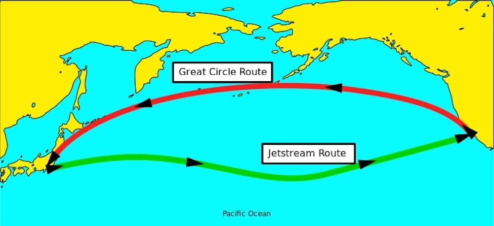 When Flying To Japan From The United States Why Do Most Flights Never Go Directly Over The Pacific Ocean Most Tend To Go Around It Instead Of Over It Wouldn T It Be
